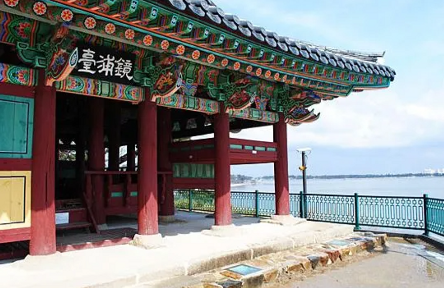 小高い丘にある鏡浦台からは鏡浦湖(キョンポホ)と奥に広がる海が見え、夜になると「夜空に浮かぶ月」・「湖にうつる月」・「海にうつる月」・「お酒の杯にうつる月」・「恋人の瞳にうつる月」の5つの月が見られるといわれます。