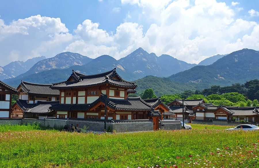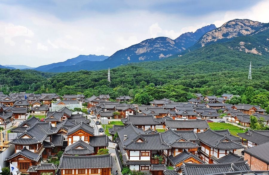 家屋や道路はきれいに整備されており、北韓山の麓に位置するため雄大な自然との調和が魅力的です。