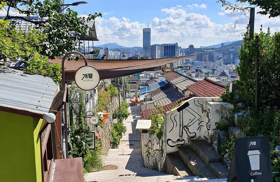 お腹が満たされたら、韓国ドラマにちょくちょく現れるロケ地の定番となった「駱山(ナクサン)公園」、そして街全体が芸術で溢れる「梨花(イファ)壁画村」を巡ります。ガイドブックに大々的に載っていない隠れた名所ばかりを集めたツアーです。