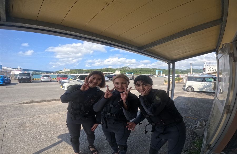 渡久地港から送迎車もしくはボートででポイントへ移動!!