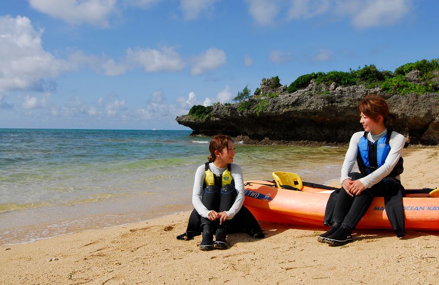 沖縄恩納村のきれいな海を二人乗りのシーカヤックに乗ってちゅら海を満喫!