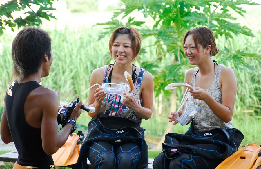 水着はウェットスーツの着替えがスムーズにできるようお手数ですがあらかじめ衣服の下に着用の状態でご来店ください。