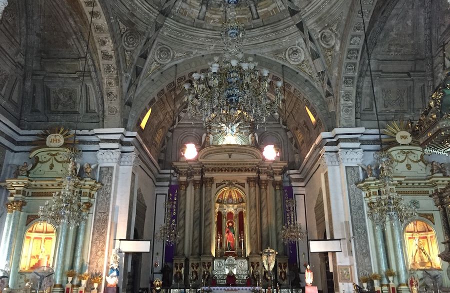 ■世界遺産にも指定されている400年前に建設された教会です。内部の細かい作り、バロック風のインテリアやシャンデリア、壁画はアジアにいることを忘れさせてくれます。
