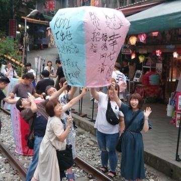 一番楽しみにしていた、天燈上げも、みんなでランタンに願い事を書いて 線路の上にたって、空へ。貴重な体験ができて、良い思い出できました。