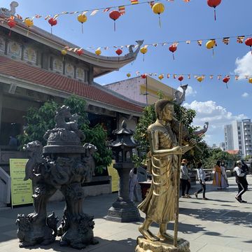 ヴィンギエム寺はお供え物がバナナやパイナップルだったり、飾ってある花がトロピカルな感じで、とっても陽気な印象のお寺でした!お寺の飾りもとてもカラフル。もちろん冷房がないのでめちゃめちゃ暑かったですが、近代化されてない感じがまた良かったです。お寺で鐘をつくことができるのですが、日本語が書いてあり、日本と縁のあるお寺でもあるそうです。お土産になるようなお守りやおみくじなどは売っていませんでしたが、(売っていたのかもしれませんが見つけられませんでした…)仏像やキーホルダーなどのお店もありました。 -