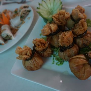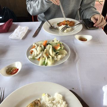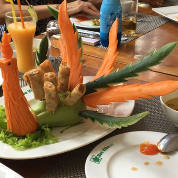 野菜のデコレーションが美しいフエ宮廷料理の昼食は、美味しく量も充分でした。 また帰りはお土産物屋さんに寄ったのですが、降車場所をハン市場の前など臨機応変に対応していただき助かりました。