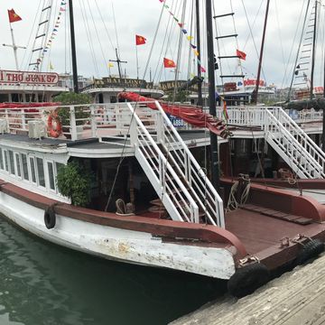 約2時間弱遅れで到着したんですが、ハロン湾クルーズ自体は楽しかったです。席は6人1グループに振り分けられました。知らない人同士でお話しするのも貴重な体験でした。食事は可もなく不可もなくかな。途中立ち寄った鍾乳洞は人が多すぎでした。出入りする船同士でぶつかりまくし、上陸しても人が多すぎて逆にちょっと疲れてしまいました。