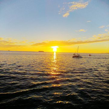 デッキから見える夕日がとても綺麗でした。写真もたくさん撮れたのでいい思い出です。思っていたよりは小さな船でしたが、スタッフの方たちもみんな親切ですごく居心地のいいディナークルーズでした。ちなみに私は船酔いが心配だったので、事前に日本から持ってきた酔い止めを服用して参加しました。ですが、周りの参加者たちも船酔いしている人は全く見かけなかったので、酔い止めは必要ないかもしれません。ディナーは丸ごとのロブスターが出てきてビックリしました。初めて食べましたが、美味しかったです。お酒も食事も全部美味しいのでカップルにはオススメだと思います。 -