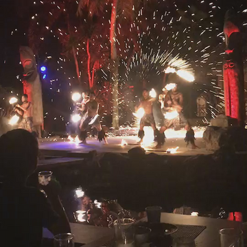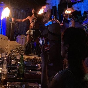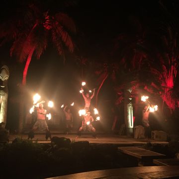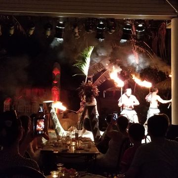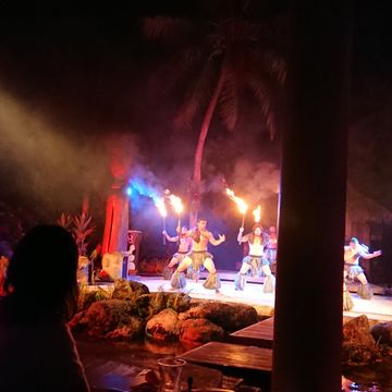 迫力満点のショーを見ながら食事も楽しめて、とっても面白かったです。個人的には、マグロのポキが美味しく感じました。肉料理もたくさんありましたが、シーフード系の方が私的には美味しかったです。また、終盤になるとダンスショーが始まるのですが、途中、参加型のダンスコンテストもあったりして、会場全体で楽しむことができました。また、最後のファイヤーダンスもすごい迫力で面白かったです。ショー自体は9時ごろまでやっていたので、帰りのバスでは子どもは爆睡してました。また、グアムに行ったらここに行きたいです。 -