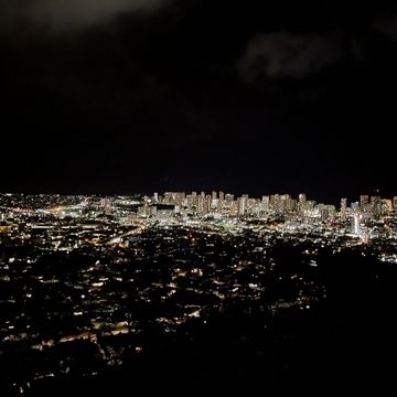 周囲に街灯などはまったくないため、ホノルル市内の夜景をとてもきれいに一望することができます。キラキラと輝く住宅の明かりが宝石のようでとてもきれいでした。