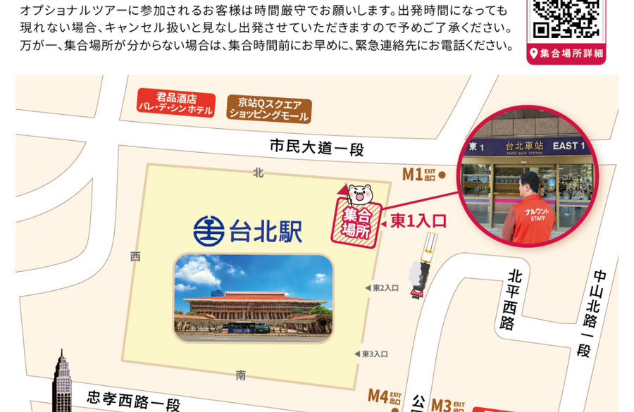 集合場所:台北車站-東1門(台北駅1階-東1門出口)