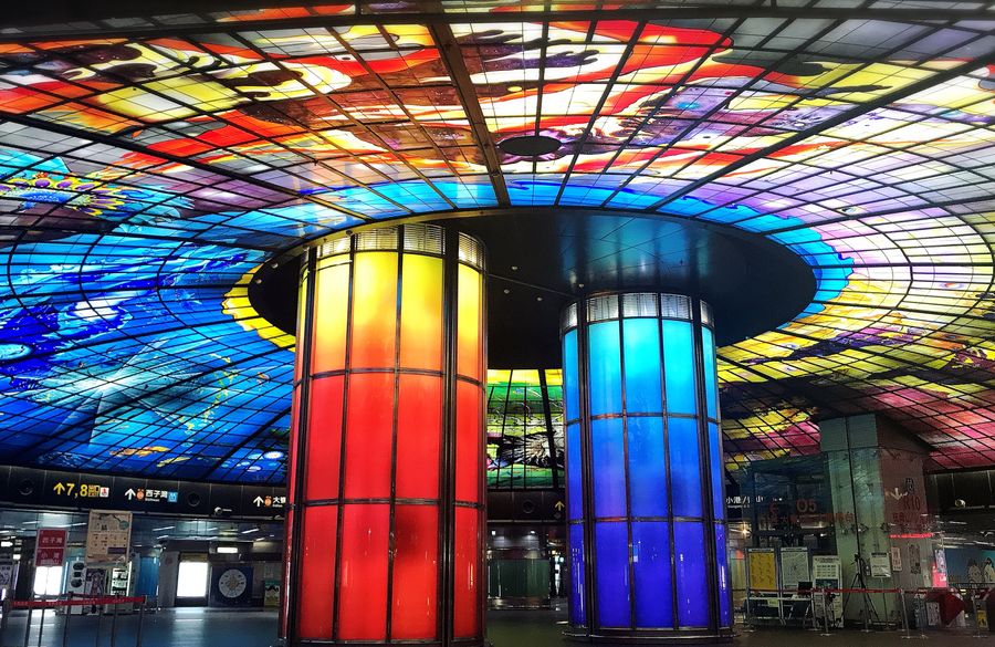■アメリカのトラベルサイトで「世界で最も美しい地下鉄の駅」2位に選ばれた美麗島站。構内中央に光のドームがあり、4,500枚のステンドグラスは必見です。