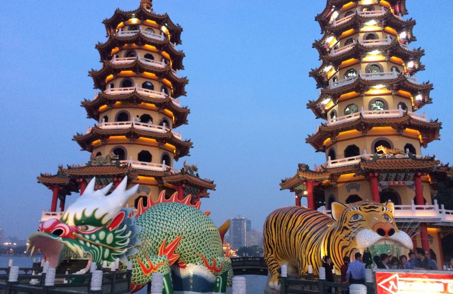 ■高雄の有名な人気観光スポット。龍の口から入り、虎之口から出ることで災いがなくなり福がくる、パワースポットと言われています。