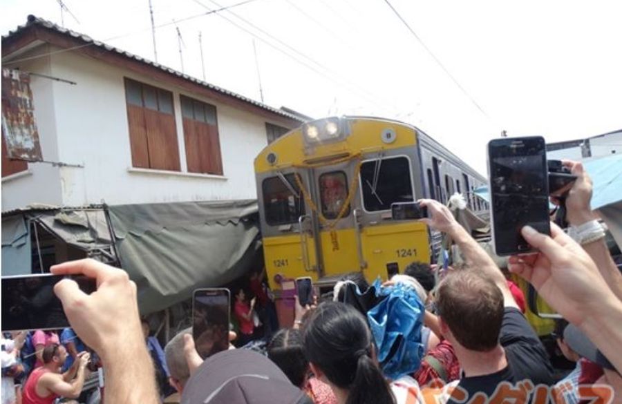 これぞタイの名場面 傘たたみ市場 ローカル列車乗車付