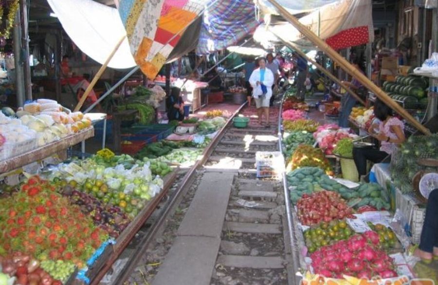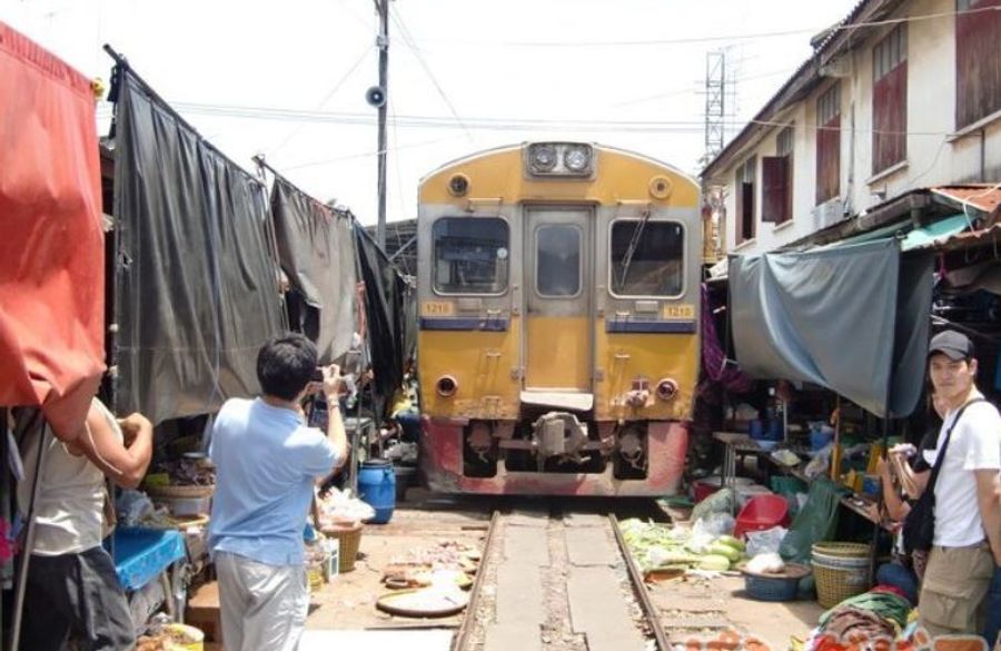 「世界の車窓から」でも紹介された場所で、その名の通り、線路の上に市場があり、列車が来ると
