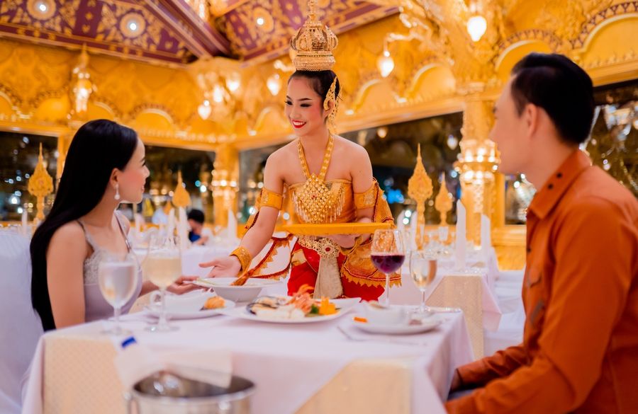 ビュッフェは4000人収容可能なキナリーレストランで、タイ料理をはじめ