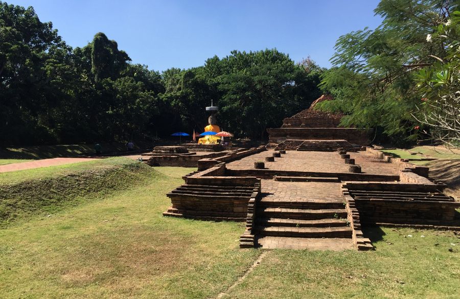 ウィアンクムカーム遺跡ははピン川土手にひっそりと隠れており、チェンマイ市内から南に約6kmほどの場所にある遺跡群です。ここはチェンマイ地域最古の都市で、11世紀から12世紀に、ハリプンチャイ王国の衛星都市としてモン族が設立しました。この都市は18世紀初めに大洪水で地中に埋もれてしまいましたが、現在発掘・再現されました。この遺跡群では、碑文が刻まれた石版、レンガ、鐘、チェディーなど1300点以上発掘されるなどチェンマイ北部の歴史を知る上で、非常に重要なものとなっています。各遺跡間は距離があるため、馬車にて移動します。