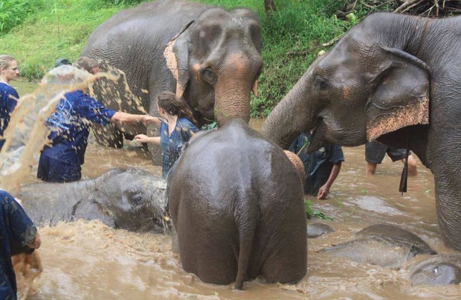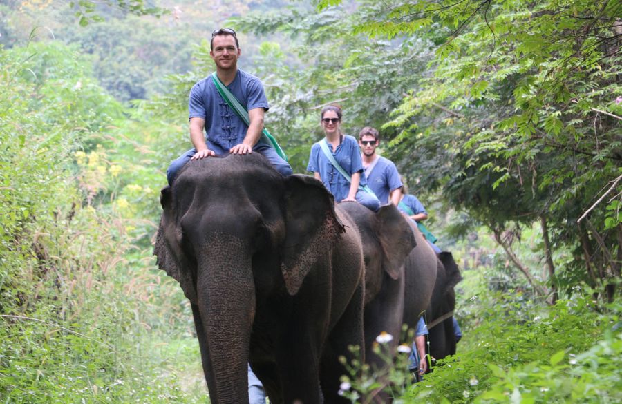 タイエレファントホーム→象使い用の服に着替え、最初にトレーニングについての基本的な説明を受けます→昼食→象に乗って水浴び場まで連れて行きます。そして象に水浴びをさせます。そしてエレファントキャンプに戻りえさを与えます→エレファントキャンプを後にしチェンマイへ戻ります