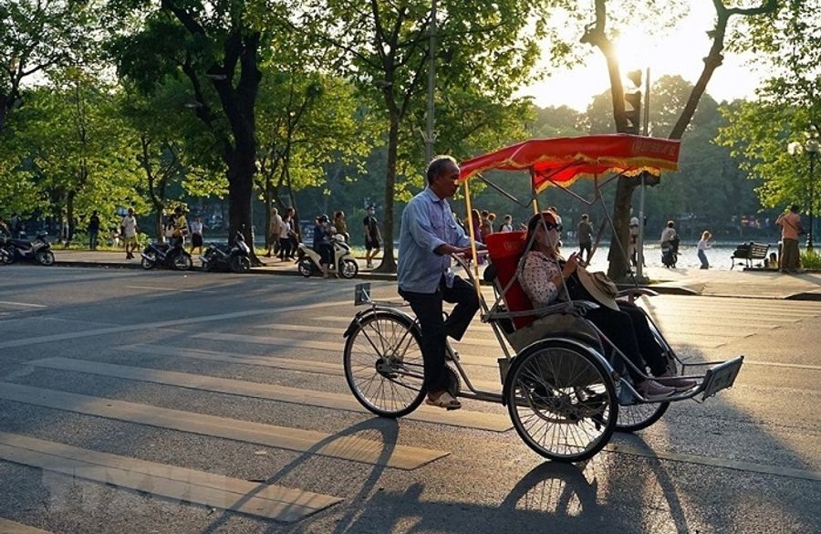シクロ、シクロ。お嬢さんが手を振ってシクロを運転している男性に声をかけていました。ハノイの旧市街ではよく見かける光景です。シクロ(フランス語でcyclo)は、ベトナムの交通手段の一つ。利用するのは人の力です。3輪の構造で、人や荷物を載せることが出来ます。運転は自転車を操るのと同じ要領です。