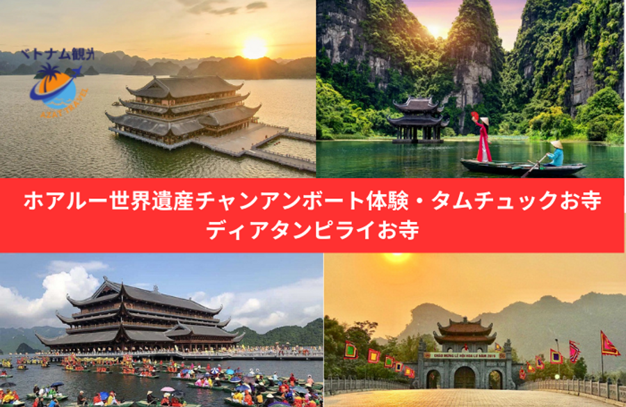 【貸切】ニンビンホアルーチャンアン・タムチュックお寺・ディアタンピライお寺・日帰りツアー・日本語ガイド付き・毎日催行・ホテル送あり/ニンビン/チャンアン/チャンアンボート体験・日帰りツアー