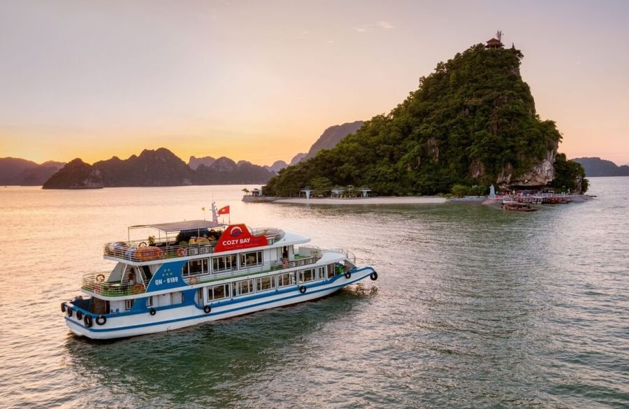約6時間のクルーズが始まります。船上でロマンチックなランチをお楽しみください, それから世界自然遺産のハロン湾を探索します
