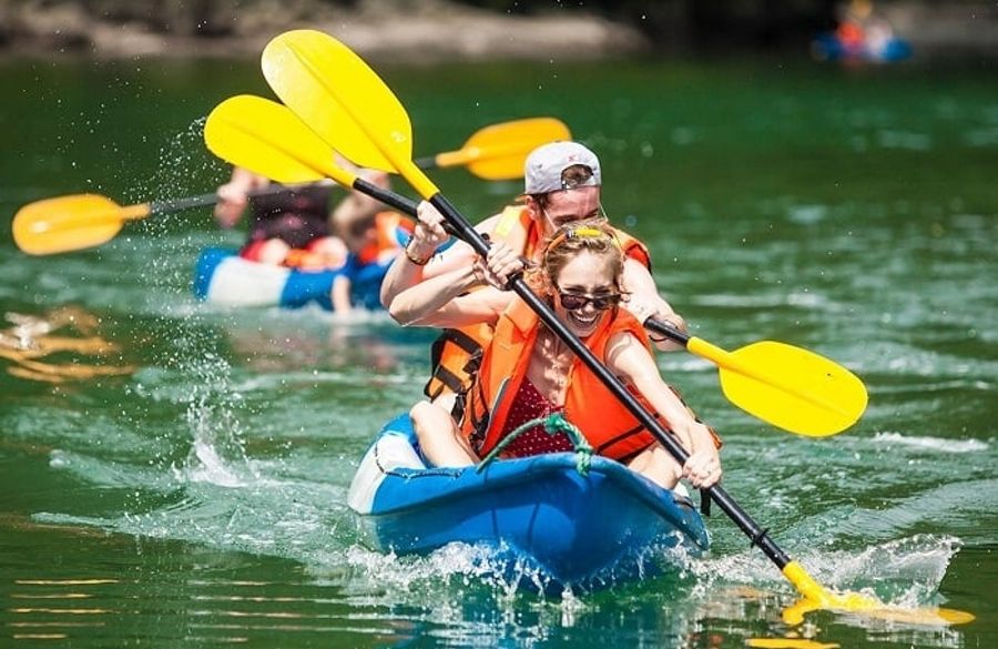 小舟体験をすることができます。奇岩が目の前に迫る様子は迫力満点です。