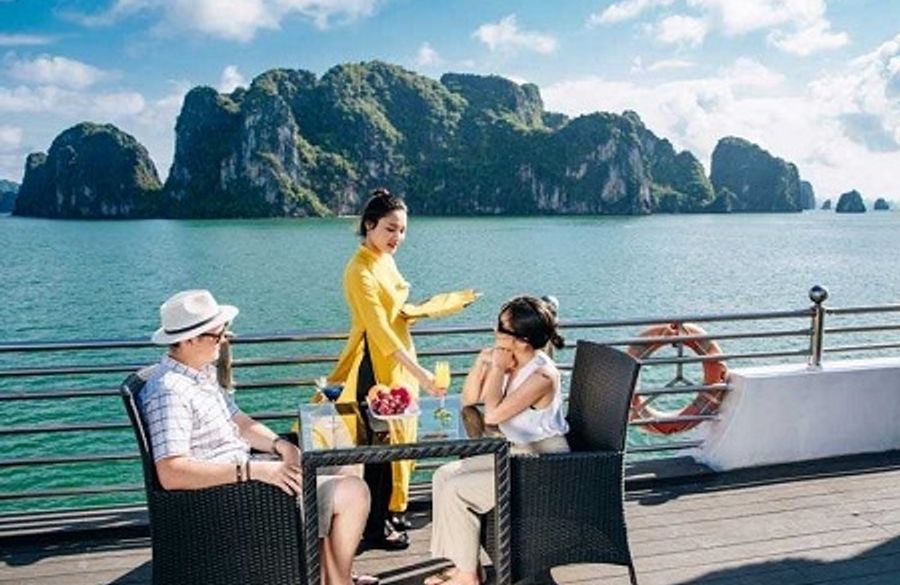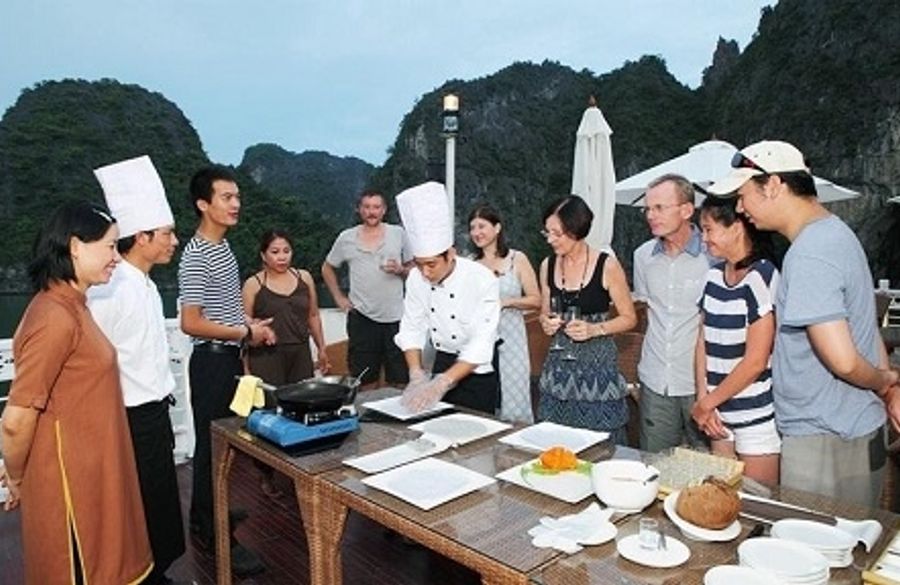 ランチは居心地の良いレストランで提供しています。クルーズは世界の自然の驚異であるハロン湾に向けて出発し、石灰岩の豪華な景色と有名な名所を満喫します。