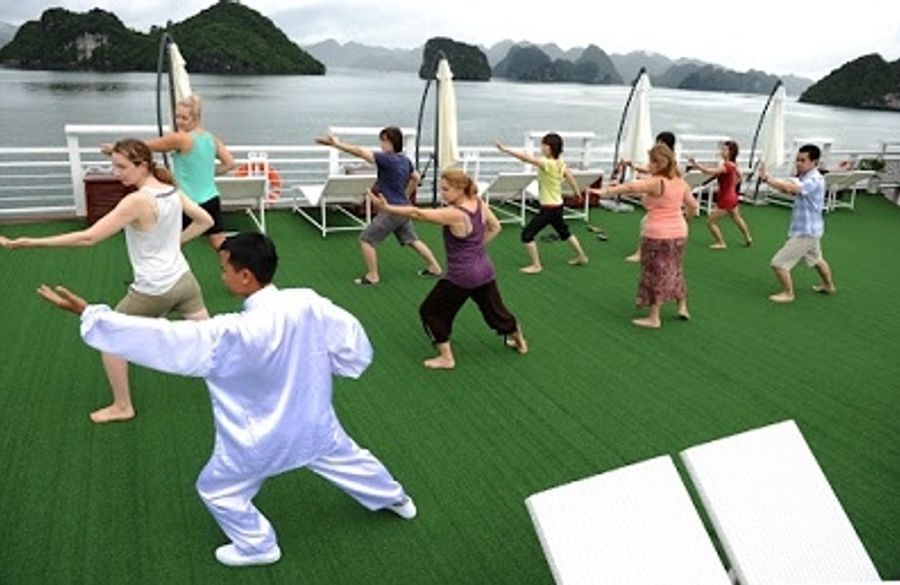 おはようございます。30分後にサンデッキで太極拳のエクササイズに参加し、「ルオン」洞窟まで移動します。