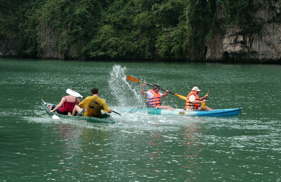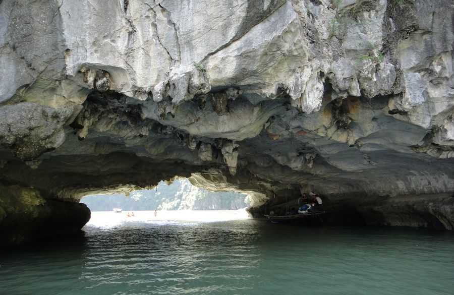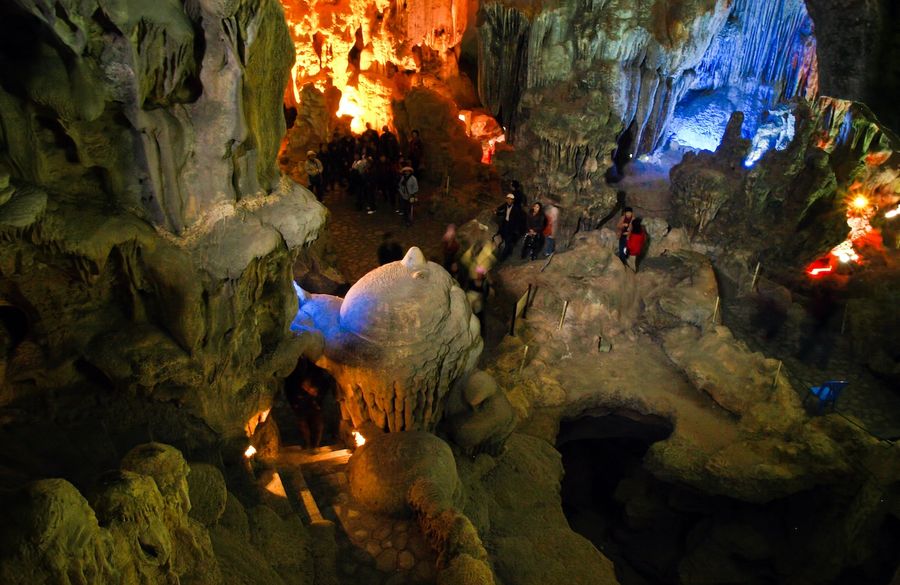 Explore Fighting Rooster Islets (named after its shape) and visit Heaven Grotto (Thien Cung Cave) to see stunning stalagmites and stalactites