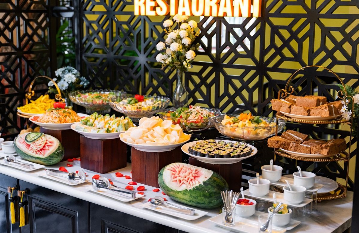 ■ニンビン名物のヤギ肉料理、おこげ、春巻きなどをビュッフェスタイルまたはセットランチでお召し上がりください。