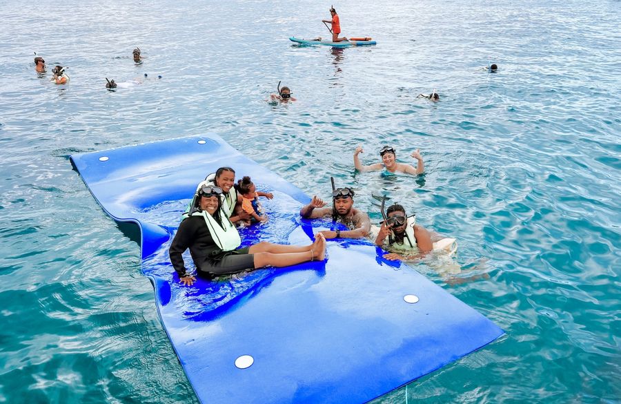 その後はシュノーケリングポイントへ移動。カラフルな熱帯魚や、幸せを運ぶといわれるウミガメが生息するポイントにてシュノーケリングを満喫しましょう!他にもスタンドアップパドルボードやお子様に人気なウォーターフロート、シーカヤック、スライダーも体験できます。
