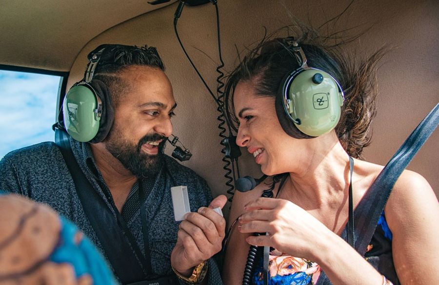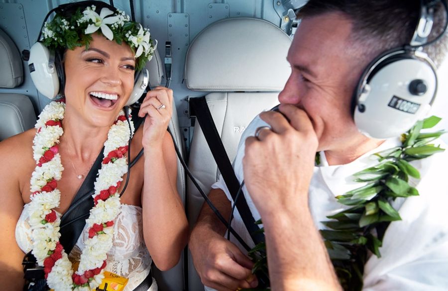 In-flight Proposal in a Private Helicopter (45 minutes, Doors on or off, Hawaiian Leis included, photographer additional ok)