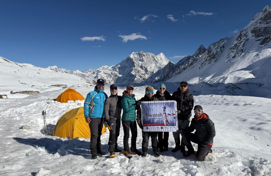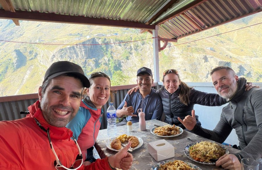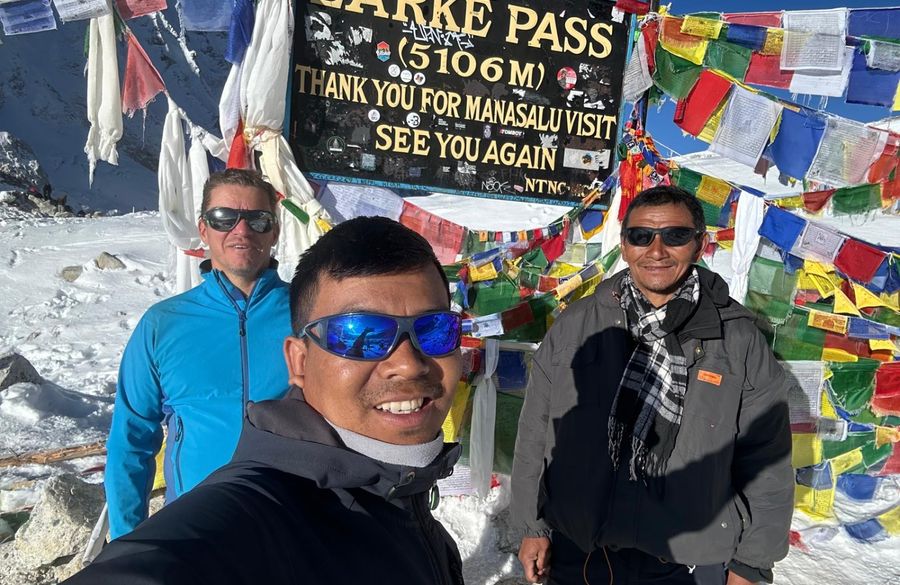 Today is the most challenging part of the trek, crossing the high Larkya La Pass (5,160m/16,930ft). The ascent is steep and rocky, often icy and snow-covered, requiring caution. At the top, you're rewarded with panoramic views of Manaslu, Himalchuli, Cheo Himal, and more. The long descent to Bhimtang reveals a dramatic shift from barren alpine terrain to lush rhododendron and pine forests.