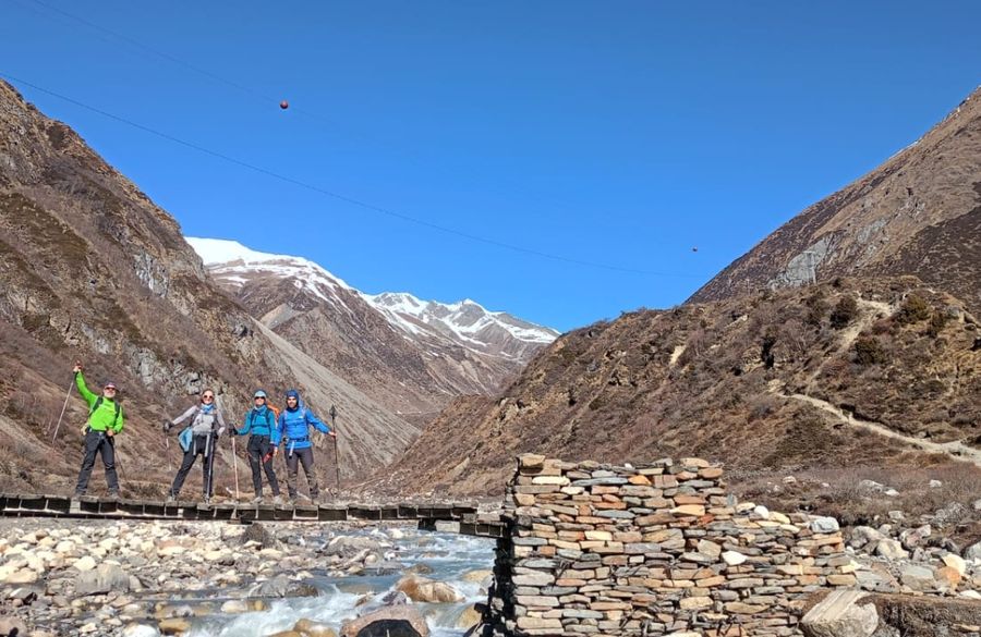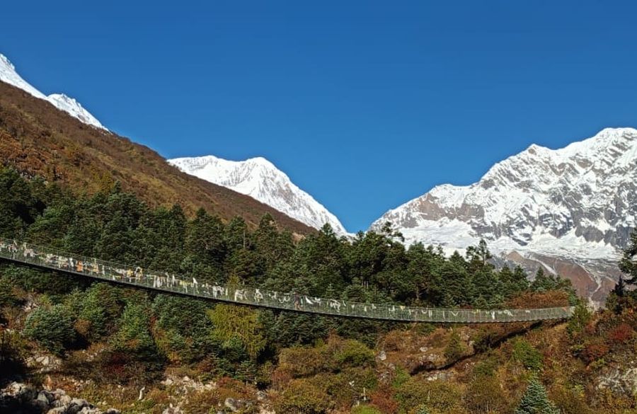 This 6 to 7 hour trek begins with a gentle walk through rhododendron and pine forests, gradually ascending into alpine terrain. Cross several suspension bridges and pass scattered settlements like Bihi and Ghap, where Tibetan influence becomes more noticeable. The trail follows the Budhi Gandaki River through narrow gorges and opens up as you approach Namrung, a beautiful village known for its traditional stone houses, prayer wheels, and mountain views.